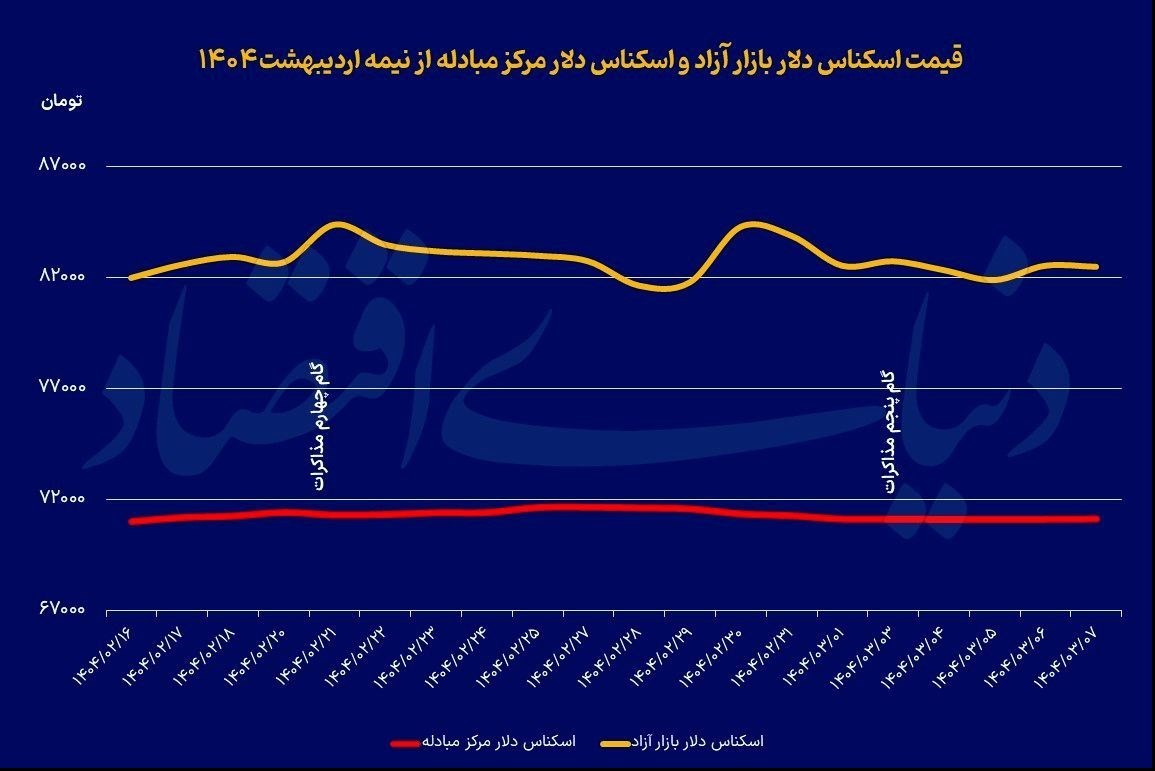 روز گذشته باوجود اخباری که درباره اختلافات میان ایران و کشورهای اروپایی بین فعالان بازار وجود داشت، قیمت دلار به روند باثبات خود ادامه داد و آرام ترین روز خود را از 24 دی 1403 تاکنون تجربه کرد. به طوری که هر دلار آزاد در روز چهارشنبه در رقم 82 هزار و 500 تومان معامله شد. پیتر ماندلسون سفیر انگلیس در آمریکا عصر سهشنبه اعلام کرده بود که ایران باید برنامه غنی سازی خود را کنار بگذارد. عباس عراقچی وزیر امور خارجه ایران نیز در واکنش به این اظهارات در شبکه ایکس نوشت که ایران غنیسازی صفر را نخواهد پذیرفت. با این حال تداوم روند مذاکرات میان ایران و آمریکا باعث شد تا فعالان بازار به این اخبار واکنش هیجانی نشان ندهند و همچنان از انجام معاملات سنگین خودداری کنند.