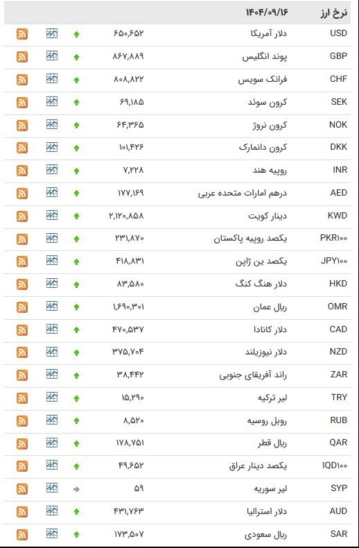 قیمت انواع ارز بانک مرکزی در ۱۶ آذر ۱۴۰۴