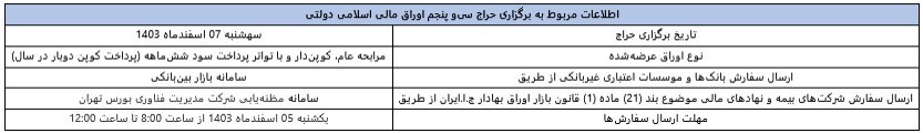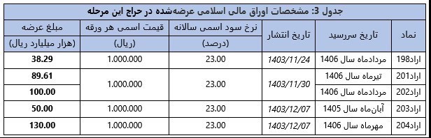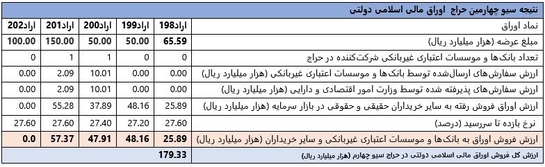 عصر اعتبار- نتیجه سی و چهارمینمرحله از حراج اوراق مالی اسلامی دولتی درسال ۱۴۰۳ ( ۳۰ بهمن ماه ۱۴۰۳) اعلام شد، همچنین تاریخ برگزاری حراج جدید اوراق یاد شده در تاریخ ۷ اسفند ماه سال جاری خواهد بود.