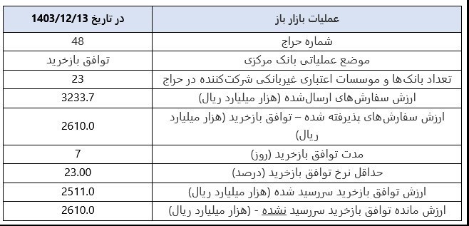 به گزارش پایگاه خبری «عصراعتبار» به نقل از روابط عمومی بانک مرکزی، گزارش عملیات اجرایی سیاست پولی (13 اسفندماه 1403) به شرح زیر است: