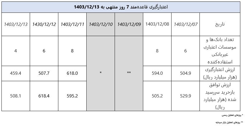 بانکها و موسسات اعتباری غیربانکی میتوانند در روزهای شنبه تا چهارشنبه از اعتبارگیری قاعدهمند (دریافت اعتبار با وثیقه از بانک مرکزی در قالب توافق بازخرید با نرخ سقف دالان نرخ سود (24 درصد) و مطابق با ضوابط تعیین شده) مشروط به در اختیار داشتن اوراق مالی اسلامی استفاده کنند.