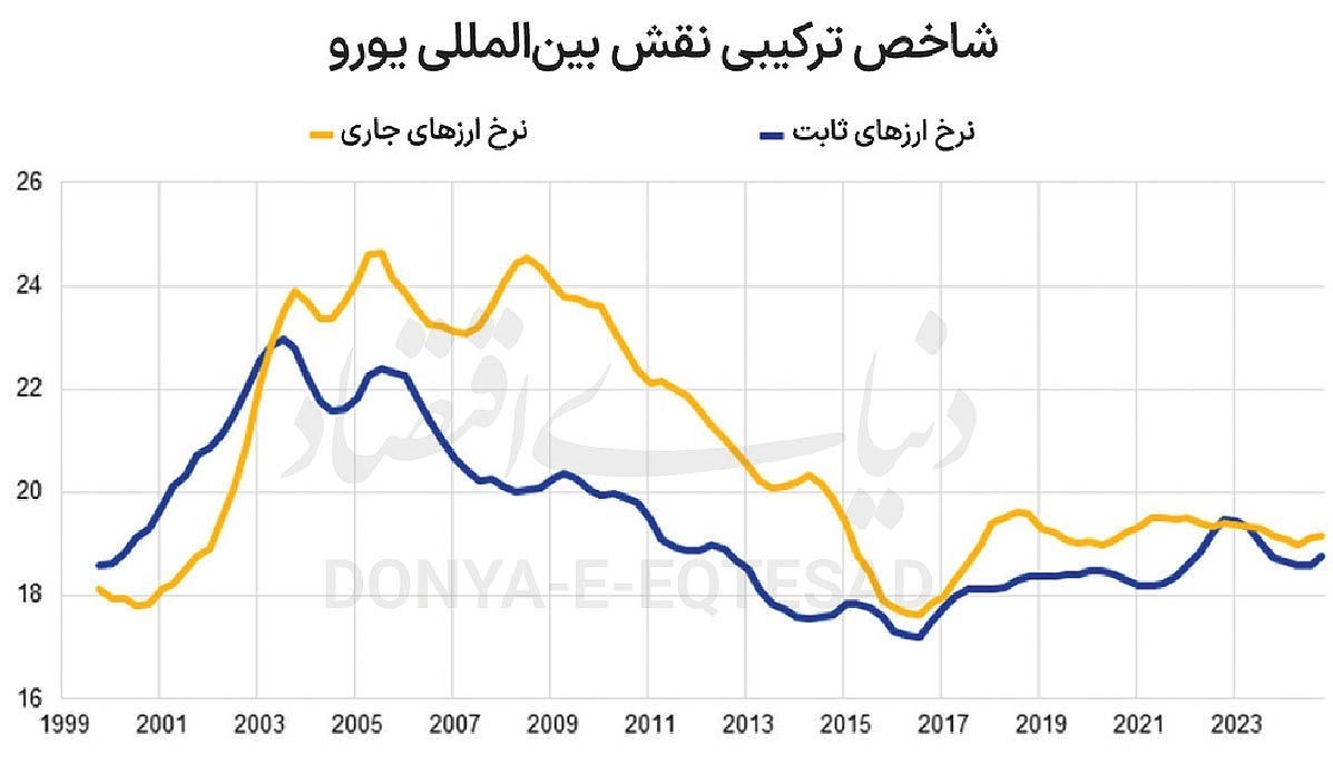 عصر اعتبار- در سال ۲۰۲۴، استفاده بین‌المللی از یورو تقریبا ثابت باقی ماند و سهم آن در ذخایر ارزی جهان حدود ۱۹ تا ۲۰ درصد بود؛ رقمی که حدود یک‌‌‌سوم سهم دلار آمریکا (۵۸ درصد) است. طبق گزارش سالانه بانک مرکزی اروپا (ECB)، این آمارها نشان‌دهنده فاصله قابل توجه یورو با دلار به عنوان ذخیره ارزی است. این در حالی است که برخی مقامات اروپایی از جمله کریستین لاگارد، رئیس بانک مرکزی اروپا، نسبت به فرصتی برای تقویت نقش جهانی یورو صحبت کرده‌‌‌اند، به‌‌‌ویژه در شرایطی که بی‌‌‌ثباتی سیاسی و اقتصادی ناشی از بازگشت دونالد ترامپ به ریاست‌جمهوری آمریکا، اعتماد سرمایه‌‌‌گذاران به دلار را کاهش داده است.