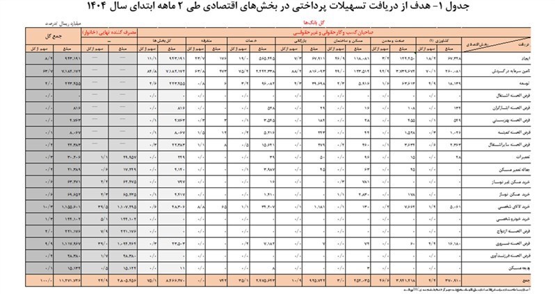گفتنی است تسهیلات پرداختی 2 ماهه سال 1403 مبلغ 7219.6 هزار میلیارد ریال بوده است که با در نظر گرفتن تعدیلات صورت پذیرفته توسط شبکه بانکی به مبلغ 7428.1 هزار میلیارد ریال افزایش یافته است.