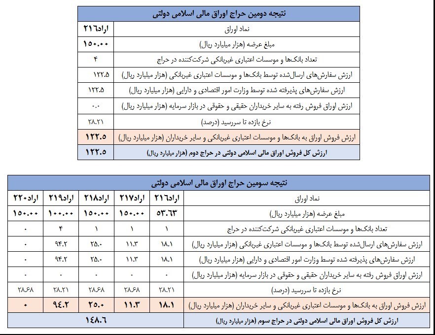 نتیجه دومین و سومین‌ مرحله از حراج اوراق مالی اسلامی دولتی در سال ۱۴۰۴