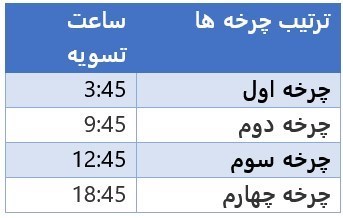 لازم به ذکر است تک چرخه روزهای تعطیل تا اطلاع ثانوی نیز به ساعت 12:45 موکول گردیده و چرخه اول تسویه شاپرکی(3:45) در ایام مزبور هیچگونه تغییری نخواهد داشت.