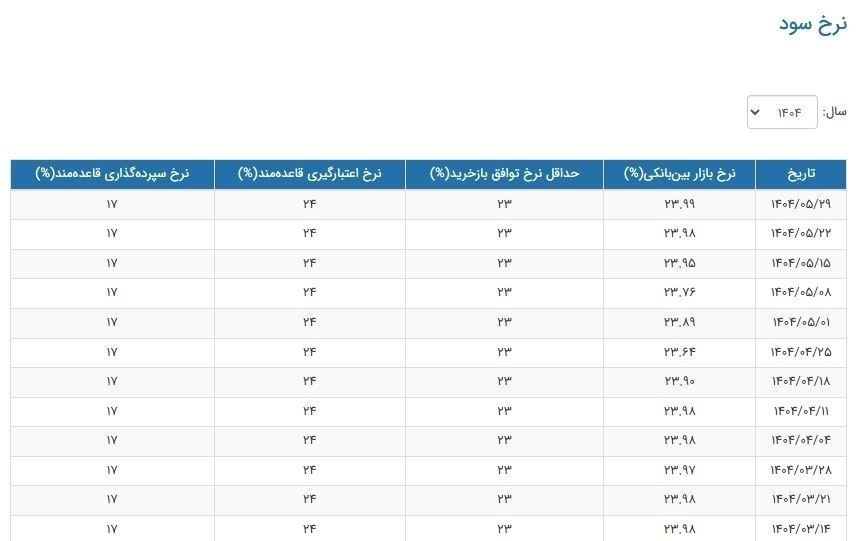 عصر اعتبار- دادههای تازه بانک مرکزی نشان میدهد نرخ سود بینبانکی در واپسین هفته مرداد به ۲۳.۹۹ درصد رسیده است.