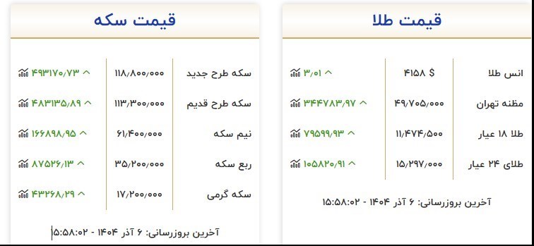 عصر اعتبار- همزمان با افزایش انس جهانی، هر قطعه سکه بهار آزادی امروز پنجشنبه ششم آذرماه، در کانال ۱۱۸ میلیون و ۸۰۰ هزار تومان قیمت گذاری شد.
