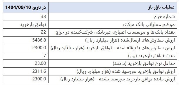 به گزارش پایگاه خبری «عصر اعتبار» به نقل از روابط عمومی بانک مرکزی، گزارش عملیات اجرایی سیاست پولی (10 آذرماه 1404) به شرح زیر است: