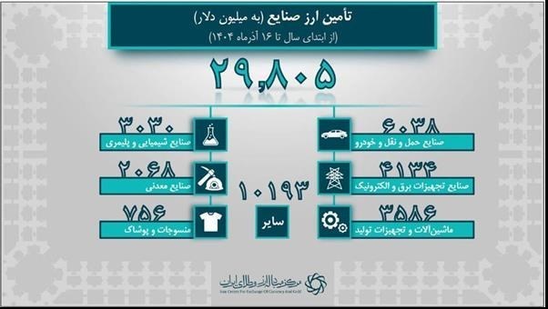 عصر اعتبار- از ابتدای سال جاری تا ۱۶ آذرماه در مجموع ۴۰ میلیارد و ۸۷۲ میلیون دلار برای نیازهای مختلف وارداتی کشور توسط بانک مرکزی تأمین ارز انجام شده است.