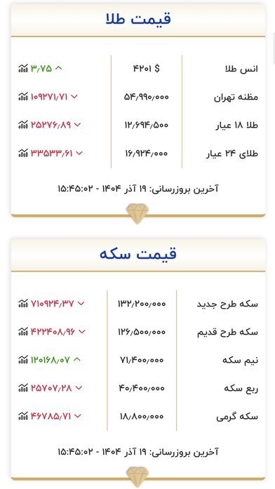 عصر اعتبار- قیمت انواع سکه و مصنوعات طلا در بازار تهران به دلیل کاهش قیمت ارزهای عمده در بازار آزاد در روز چهارشنبه (۱۹ آذرماه) برخلاف چند روز گذشته کاهش قیمتی خود را با شیب کُندی آغاز کرد و هر سکه تمام بهار آزادی به کانال ۱۳۲ میلیون و ۲۰۰ هزار تومانی بازگشت.