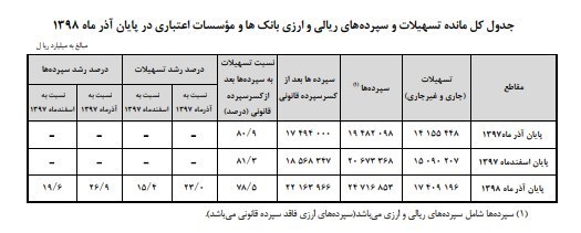عصر اعتبار- آمارهای بانک مرکزی از افزایش ۲۶.۹ درصدی مانده سپردهها و ۲۳ درصدی مانده تسهیلات بانکی در پایان آذر ۹۸ نسبت به مقطع مشابه سال قبل حکایت دارد.