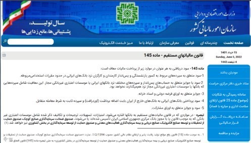 همچنین بر اساس بند دوم ماده 145 قانون مالیاتهای مستقیم، سود سپرده بانکی اشخاص حقیقی از پرداخت مالیات معاف است.