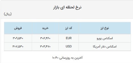علاوه بر این، نرخ خرید اسکناس دلار در بازار متشکل ارزی 28 هزار و 768 تومان و نرخ فروش آن 29 هزار و 30 تومان اعلام شد.