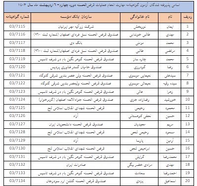 عصر اعتبار- اسامی پذیرفته شدگان چهارمین دوره آزمون مهارت انجام عملیات قرضالحسنه در صندوقهای قرضالحسنه تک شعبهای اعلام شد.
