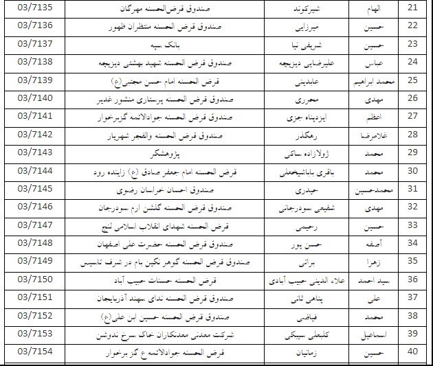 به گزارش پایگاه خبری «عصر اعتبار» به نقل از ایبنا؛ پیرو برگزاری چهارمین آزمون مهارت انجام عملیات قرضالحسنه در صندوقهای قرضالحسنه تک شعبهای در روز 6 اردیبهشت ماه سال جاری، اسامی پذیرفته شدگان آزمون به شرح فهرست زیر اعلام میشود: