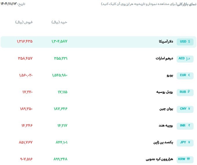 به گزارش پایگاه خبری «عصر اعتبار» به نقل از ایبنا، امروز دوشنبه 13 بهمن ماه 1404، قیمت فروش حواله دلار آمریکا در مرکز مبادله ارز و طلای ایران 131 هزار 643 تومان و قیمت خرید حواله دلار 130 هزار و 458 تومان است.
