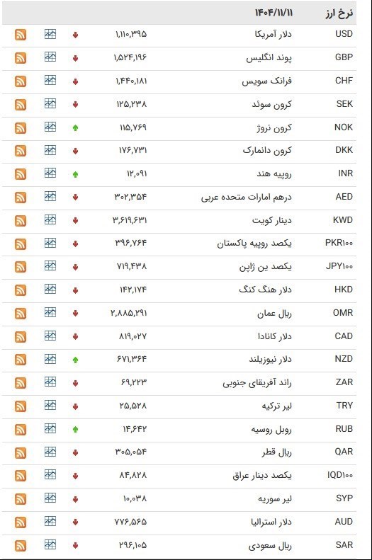 قیمت انواع ارز بانک مرکزی در ۱۱ بهمن ۱۴۰۴