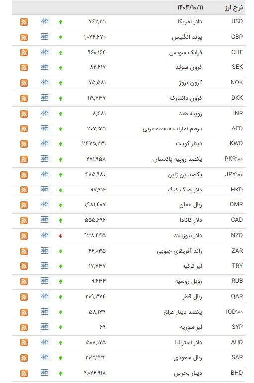 قیمت انواع ارز بانک مرکزی در ۱۱ دی ۱۴۰۴
