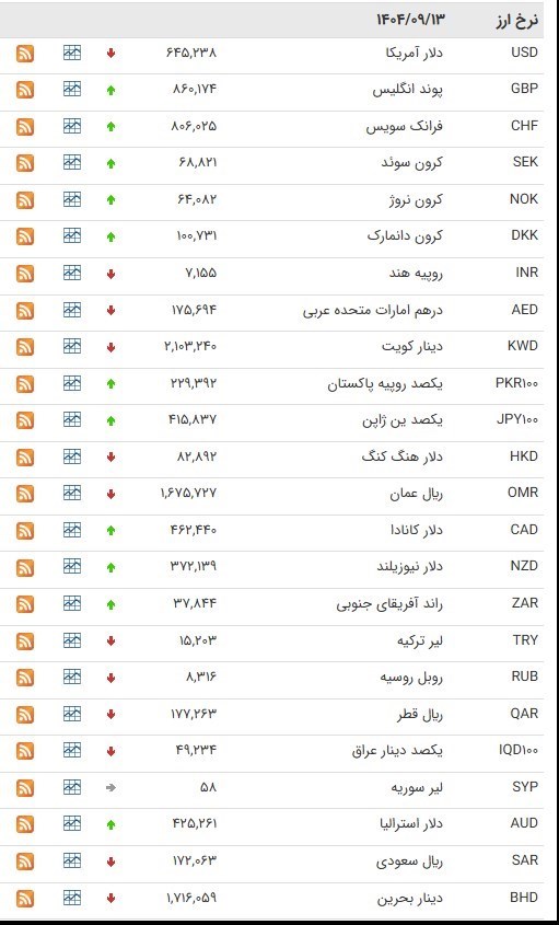 قیمت انواع ارز بانک مرکزی در ۱۳ آذر ۱۴۰۴