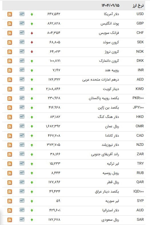 قیمت انواع ارز بانک مرکزی در ۱۶ آذر ۱۴۰۴
