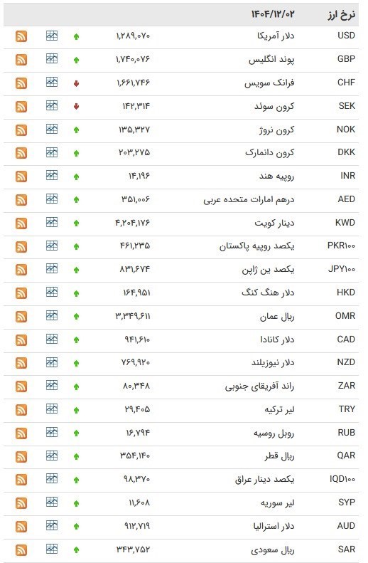 قیمت انواع ارز بانک مرکزی در ۲ اسفند ۱۴۰۴