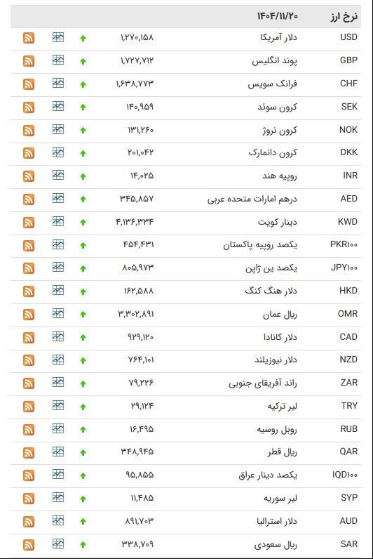 قیمت انواع ارز بانک مرکزی در ۲۰ بهمن ۱۴۰۴