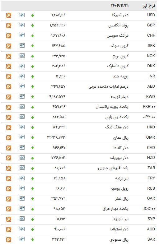 قیمت انواع ارز بانک مرکزی در ۲۱ بهمن ۱۴۰۴