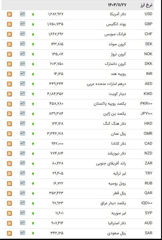 قیمت انواع ارز بانک مرکزی در ۲۷ بهمن ۱۴۰۴