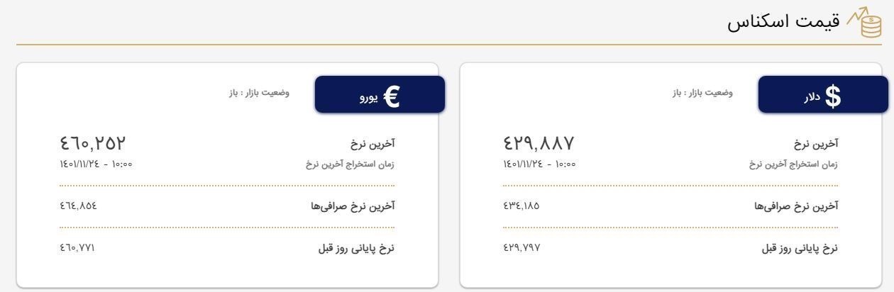 طبق اعلام بانک مرکزی، از روز 1401/11/04 کلیه صرافی‌ها مجازند نسبت به فروش ارز به صورت اسکناس با نرخ منتشرشده تحت عنوان "آخرین نرخ صرافی‌ها" در سایت مدیریت بازار متشکل معاملات ارز ایران، به آدرس www.ice.ir اقدام نمایند.
