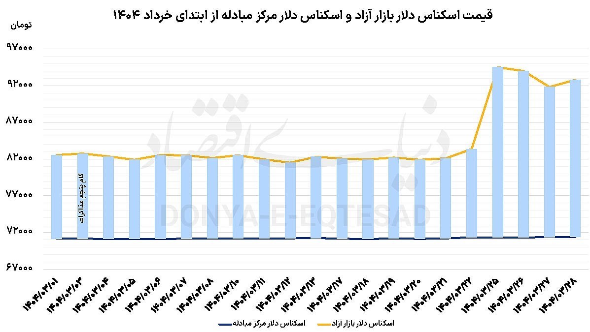 روز چهارشنبه هر دلار آزاد در رقم 92هزار و 800تومان به فروش رسید. در حال حاضر قیمت دلار از 94هزار و 500تومانی که در نخستین روز بازگشایی بازار پس از حمله نظامی اسرائیل ثبت شده بود، فاصله گرفته است. به نظر میرسد در شرایط فعلی که تمایل مردم بیشتر به نگهداری ریال است، تقاضا برای دلار کاهش پیدا کرده و همین موضوع باعث شده پیشبینیها درباره ادامه روند نزولی قیمت آن در روزهای آینده قوت بگیرد. در حال حاضر، بازار ارز در وضعیت نیمهتعطیل قرار دارد و به نظر میرسد با نرخهای فعلی، حجم معاملات چندان قابل توجه نیست. از سوی دیگر در روز گذشته بازار ارز تجاری به روند باثبات قیمتی خود ادامه داد و معاملات بدون وقفه در جریان بود. در این روز هر دلار مرکز مبادله با افزایش جزئی در رقم 71هزار و 373تومان معامله شد.