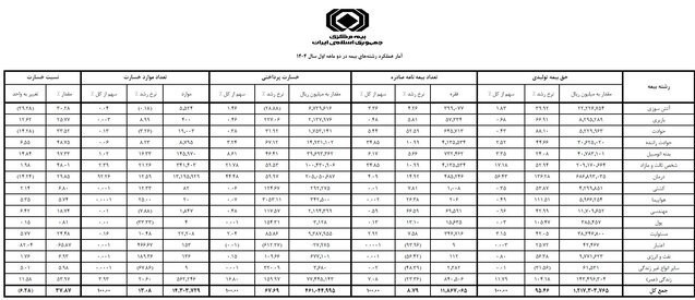 از سوی دیگر، میزان خسارات پرداختی بیمهای در فروردین ماه سال جاری، 14.3 میلیون فقره خسارت به ارزش 46.1 هزار میلیارد تومان بوده که حاکی از رشد 67 درصدی در ارزش خسارات پرداختی و رشد 13 درصدی در تعداد موارد خسارات پرداختی، است.