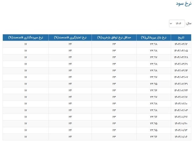 گفتنی است؛ در آذرماه سال 1403، نرخ بهره بین بانکی به کانال 23.9 درصد وارد شد و از آن زمان تا امروز در همین محدوده و نزدیک به 24 درصد متغیر بوده است. البته این نرخ در دی و بهمن ماه سال گذشته به 23.98 درصد رسید اما هیچ زمانی از مرز آن عبور نکرد و وارد کانال 24 درصد نشد. با این حال، طی چند ماه اخیر نرخ بهره بین بانکی در نزدیکترین محدوده خود با کانال 24 درصد تثبیت شده است.