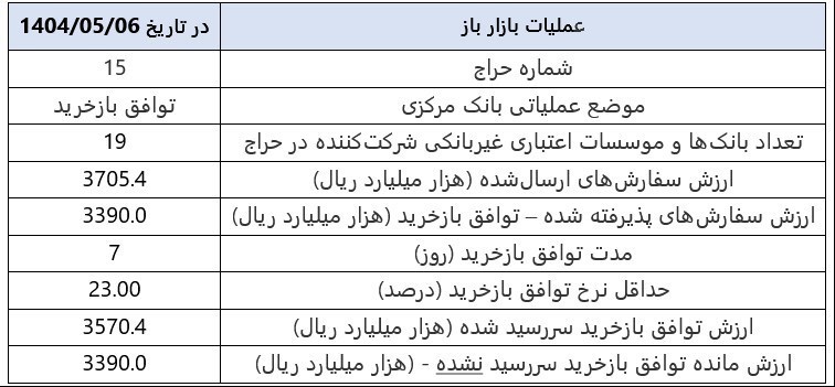 به گزارش پایگاه خبری «عصراعتبار» به نقل از  روابط عمومی بانک مرکزی، گزارش عملیات اجرایی سیاست پولی (6 مرداد ماه 1404) به شرح زیر است: