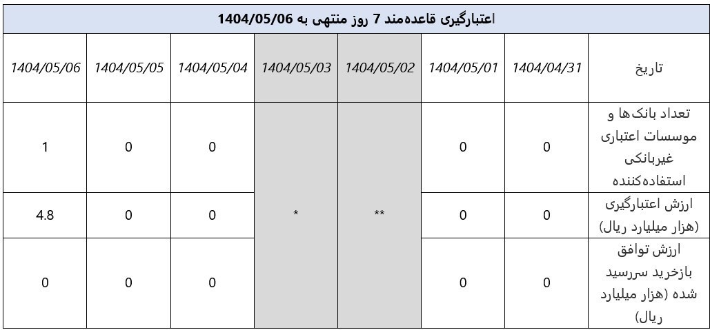 بانک‌ها و موسسات اعتباری غیربانکی می‌توانند در روزهای شنبه تا چهارشنبه از اعتبارگیری قاعده‌مند (دریافت اعتبار با وثیقه از بانک مرکزی در قالب توافق بازخرید با نرخ سقف دالان نرخ سود (24 درصد) و مطابق با ضوابط تعیین شده) مشروط به در اختیار داشتن اوراق مالی اسلامی دولتی استفاده کنند.
