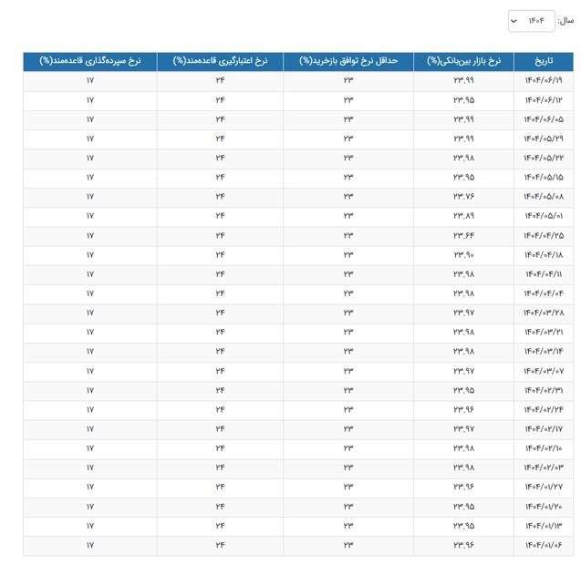 در آذرماه سال 1403، نرخ بهره بین بانکی به کانال 23.9 درصد وارد شد و از آن زمان تا امروز در همین محدوده و نزدیک به 24 درصد متغیر بوده است. البته این نرخ در دی و بهمن ماه سال گذشته به 23.98 درصد رسید؛ اما هیچ زمانی از مرز آن عبور نکرد و وارد کانال 24 درصد نشد. با این حال، طی چند ماه اخیر نرخ بهره بین بانکی در نزدیکترین محدوده خود با کانال 24 درصد تثبیت شده بود.