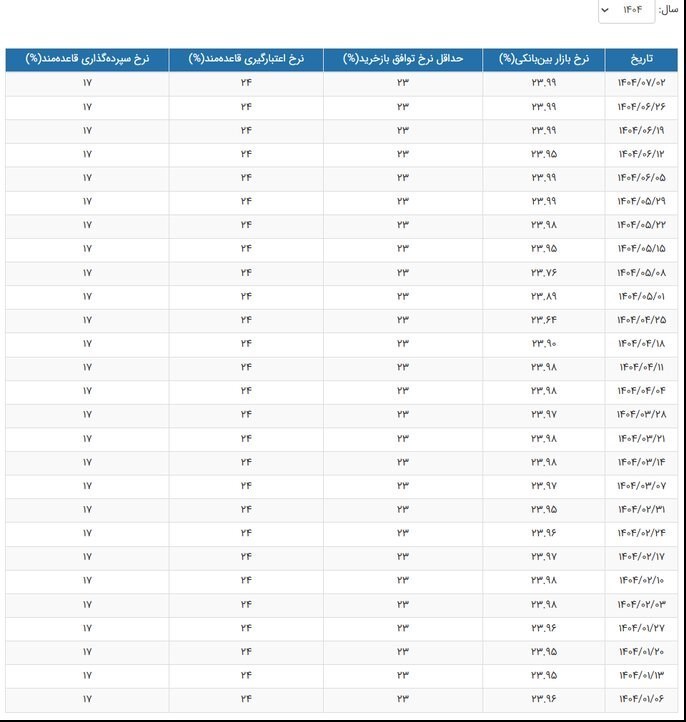 در آذرماه سال 1403، نرخ بهره بین بانکی به کانال 23.9 درصد وارد شد و از آن زمان تا امروز در همین محدوده و نزدیک به 24 درصد متغیر بوده است. البته این نرخ در دی و بهمن ماه سال گذشته به 23.98 درصد رسید؛ اما هیچ زمانی از مرز آن عبور نکرد و وارد کانال 24 درصد نشد. با این حال، طی چند ماه اخیر نرخ بهره بین بانکی در نزدیکترین محدوده خود با کانال 24 درصد تثبیت شده بود.