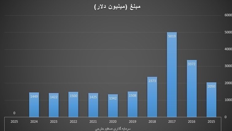 لازم به ذکر است، در بازه‌ی ده‌ساله‌ی مورد اشاره، جریان ورود سرمایه‌گذاری مستقیم خارجی به ایران دچار نوسان‌های شدید بوده است؛ به‌گونه‌ای که از رکورد 5 میلیارد دلار در سال 2017 تا افت‌های قابل‌توجه در سال‌های پس از آن، روندی با فراز و فرود شکل گرفته است.