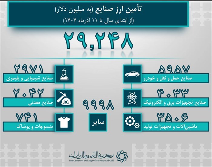 ۲۹.۲ میلیارد دلار سهم صنایع از تامین ارز