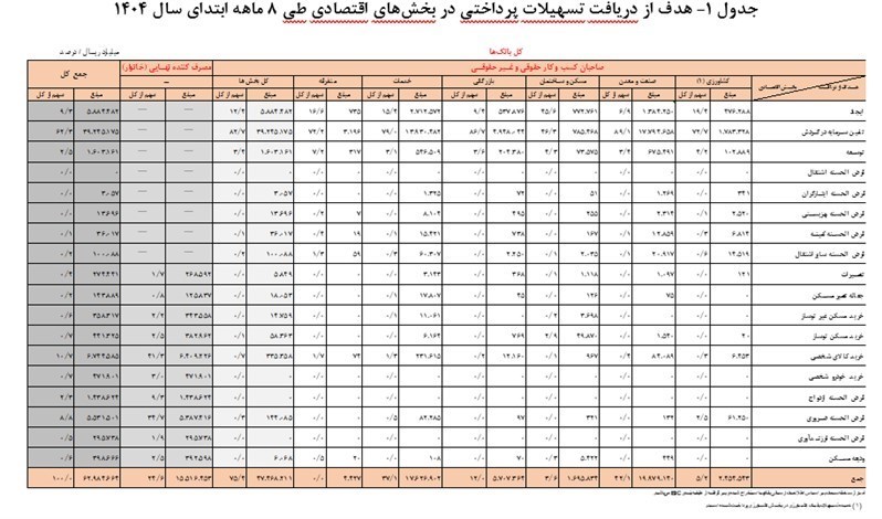 عملکرد تسهیلات پرداختی بانک‌ها طی ۸ ماهه ابتدایی سال ۱۴۰۴