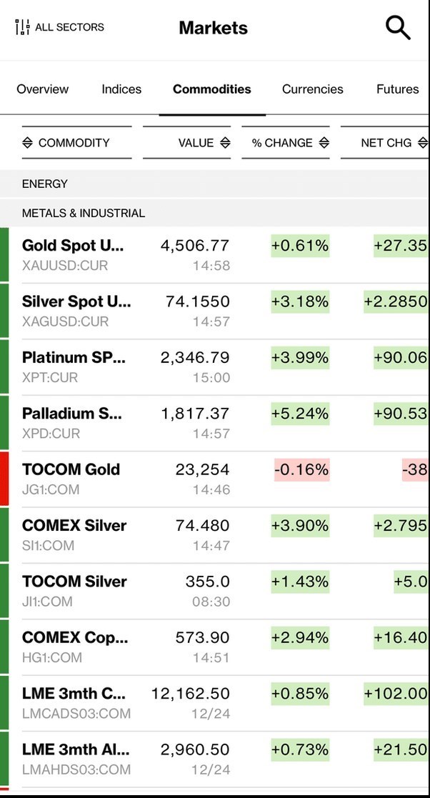عصر اعتبار- با اینکه خریدهای بازار فلزات روی نقره و پلاتین است اما بازار طلا نه به دلیل تقاضای واقعی بلکه بهخاطر ترس از جا ماندن سرمایهگذاران و تنشهای ژئوپلتیکی داغ شده است.