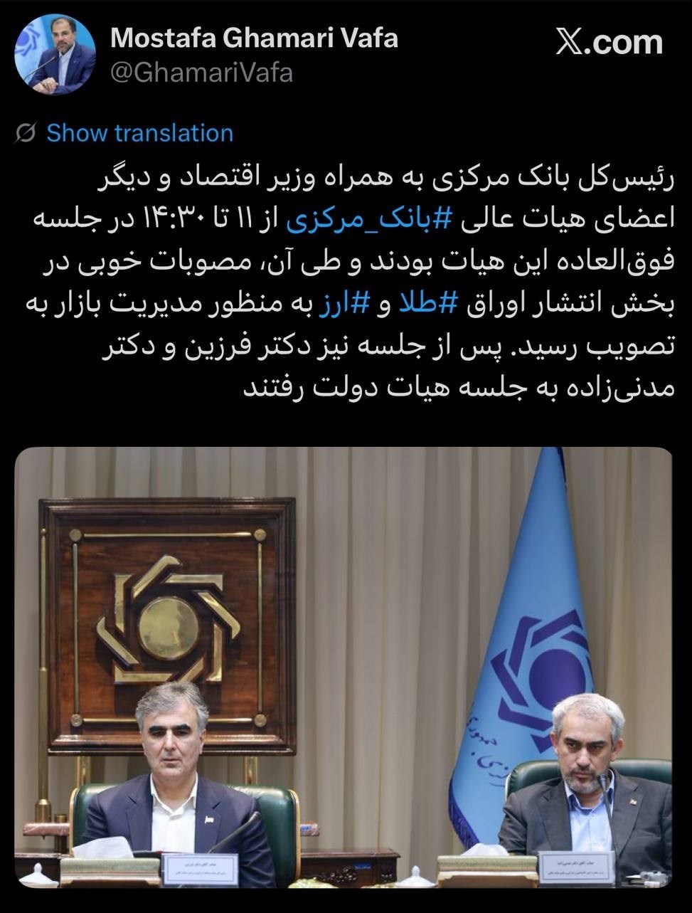 به گزارش پایگاه خبری «عصر اعتبار» به نقل از ایبنا، رئیسکل بانک مرکزی به همراه وزیر اقتصاد و دیگر اعضای هیات عالی بانک مرکزی از قبل از ظهر امروز تا 14:30 در جلسه فوقالعاده این هیات حضور داشتند و طی این نشست، مصوبات خوبی در بخش انتشار اوراق طلا و ارز به منظور مدیریت بازار به تصویب رسید. پس از اتمام جلسه نیز دکتر فرزین به همراه دکتر مدنیزاده به جلسه هیات دولت رفتند.