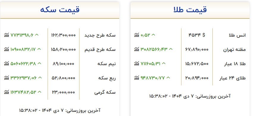 در بازار مسکوکات طلا، افزایش قیمت ها شدیدتر بود به طوری که سکه تمام طرح جدید با رشد بیش از 7 میلیون و 731 هزار تومان به 162 میلیون و 300 هزار تومان رسید و سکه تمام طرح قدیم با 10 میلیون و 900 هزار تومان، نرخ 158 میلیون و 200 هزار تومان را لمس کرد.