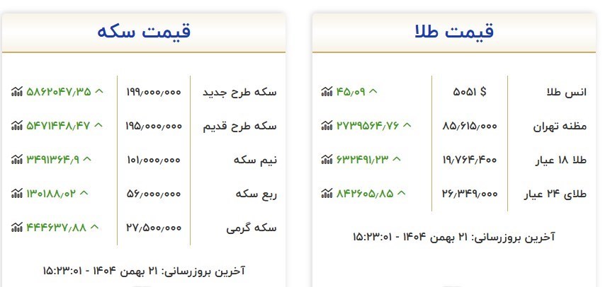 عصر اعتبار- بازار طلای تهران روز سه شنبه - ۲۱ بهمن - را تحت تاثیر افزایش قیمت جهانی طلا، صعودی پایان برد و هر قطعه سکه تمام به ۱۹۹ میلیون تومان رسید.