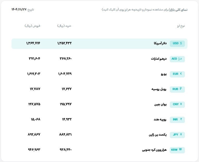 نرخ فروش حواله هزاروون کره جنوبی 94 هزار و 696 تومان و قیمت خرید حواله آن 93 هزار و 844 تومان است.
